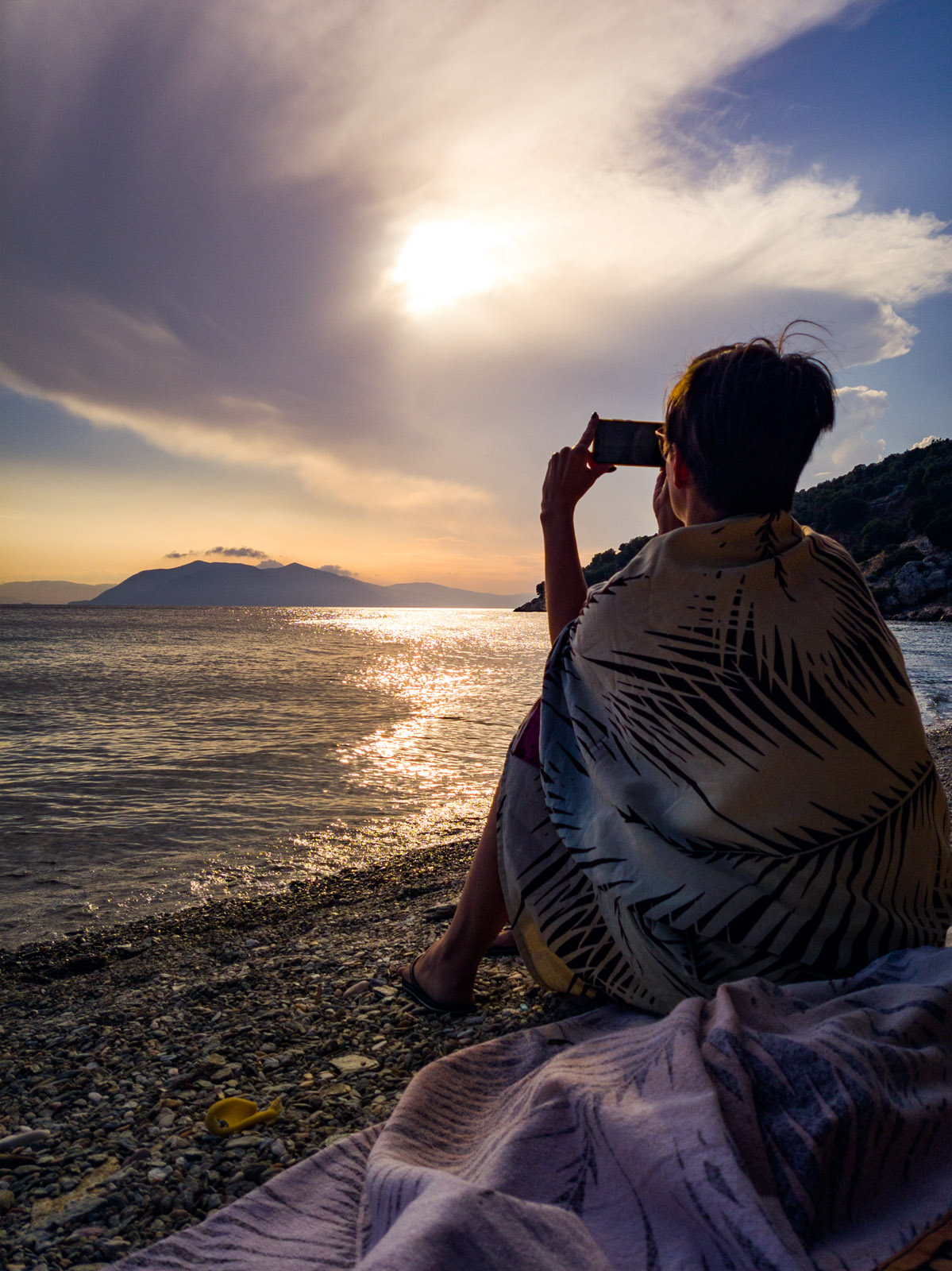 La plajă și baie în Grecia, în vremea măslinelor coapte.